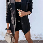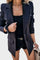 - Silhuet og komfort – Lang midtlårlængde, let polstrede skuldre og skarpe revers for en kontrolleret, flatterende silhuet.