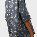 Flávia Top forener sommerlig elegance med håndværk af højeste standard. Fremstillet i en let bomuld- og linblanding giver den naturlig glans, åndbarhed og en let vægt, der holder formen gennem sæsonerne. Den elegante V-hals og det blomstrede mønster skaber et sofistikeret, afslappet udtryk, der passer til varme dage og lune aftener. Produktionen er i begrænset antal for at sikre eksklusivitet og en tidløs appel, mens hver syning vidner om vores arv af præcision og dedikation. Flávia Top lover lang levetid og en samlerappel, hvilket gør den til en klassiker i garderoben med alsidighed og varig kvalitet.