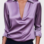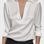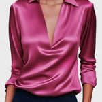 Ida | Satin skjorte udstråler fornem luksus gennem høj kvalitets satin og en sofistikeret V-hals. Den silkebløde overflade føles behagelig mod huden og sikrer komfort hele dagen. Skjorten er skabt med omhyggeligt håndværk og omtanke i oprindelsen: udvalgte materialer, diskrete syninger og en glans, der holder gennem sæsonerne. Den tilbyder tidløs værdi og en samlerappel – et plagg, der kan tones ned eller tones op afhængig af anledning. Med et let, åndbart snit er den både afslappet og struktureret, perfekt under en blazer eller alene i varme måneder.