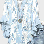 Anna | Lysblå Bluse repræsenterer en tidløs elegance til sommergarderoben. Den lyseblå nuance, kombineret med hvide bladmønstre, afspejler ren kvalitet og raffinement. Romantiske volangærmer tilfører bevægelse og femininitet, mens den afslappede pasform sikrer daglig komfort uden at gå på kompromis med stil. Håndværket ligger i den præcise sammensætning af stof og snit, der holder Anna tidløs i kollektionens arv. Begrænset antal og en klassisk silhuet gør Anna til et særligt bidrag i sommerkollektionen og en vedvarende garderobefavorit.
