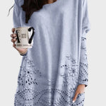 • Pasform og silhuet: Afslappet og luftig silhuet giver en behagelig pasform uden at gå på kompromis med form.