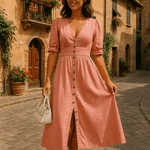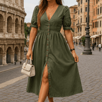 • Detaljer og æstetik: Frontknaplukning, puffede ærmer og rene linjer, der afspejler sofistikeret elegance og moderne lethed.