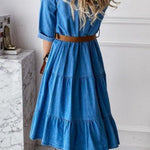 Elara | Kjole udstråler tidløs elegance gennem omtanke for håndværk og materialer. Elara™ er en solid sommerkjole, skabt til kvinder der ønsker komfort uden at gå på kompromis med stilen. Den klassiske silhuet og denim-inspirerede design giver en moderne, selvsikker fremtoning til aktive dage, spontane udflugter eller afslappede stunder. Kjolen forener holdbarhed og blødhed i stoffet, mens A-linjet snit flatterer talje og naturlige kurver uden at begrænse bevægelsen. Omhyggeligt udvalgte materialer og detaljer holder over tid, og Elara leverer langvarig værdi gennem tidløs stil og gennemførte detaljer.