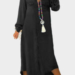 - Knaplukning langs hele kjolens længde Den lange knaplukning giver udsøgt alsidighed og en fornemmelse af arv.