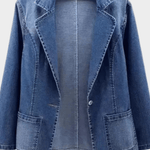Leena | Jeansjakke præsenterer en diskret luksus gennem en tidløs denimkonstruktion. Den minimalistiske silhuet, blazer-agtig krave og præcise finish forener komfort med elegance og løfter hverdagslooket med en disciplineret finesse. Materialerne er udvalgt til blødhed og slidstyrke, så jakken fastholder pasformen gennem sæsoner, mens en enkel knaplukning bevarer rene linjer. Begrænset produktion giver mærket mulighed for at fastholde en arv af kvalitet og håndværk, hvilket tilfører jakkens tidløse appel en særlig samlerværdi. Den varme patina, der udvikler sig med brug, gør Leena til en investering i tidløs stil og holdbarhed, der passer fra hverdagsøjeblikke til mere formelle stunder.