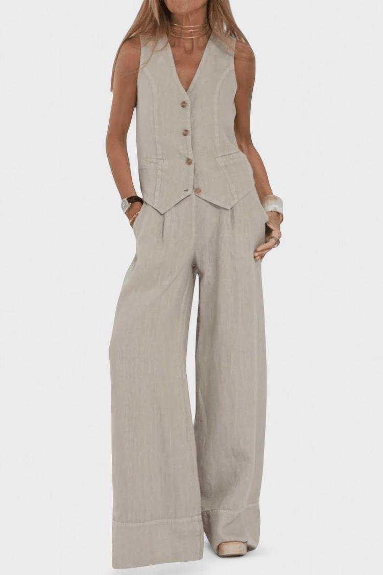 Alberte er et sofistikeret sæt, hvis håndværk og tidsløse elegance signalerer eksklusivitet uden at være påtrængende. Den let draperede kvalitet giver naturligt fald og bevægelsesfrihed gennem dagen, mens den velafstemte silhuet fremhæver femininitet med en moderne nuance. Den gennemførte finish og nøje udvalgte detaljer vidner om arv og premium håndværk, og Alberte står som en investering i stil, der ikke følger kortvarige trends, men skaber langvarig værdi. Med begrænset tilgængelighed bevarer sættet sin signatur og appel som et tidløst, stilfuldt komplement til garderoben—ideelt til både særlige lejligheder og hverdagsbrug.