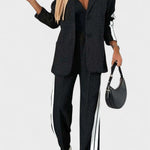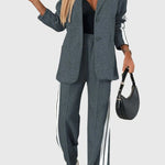 Tilde | Sæt forenes komfort og håndværk i en eksklusiv loungewear-kollektion. Det bløde, elastiske væv følger kroppens bevægelser og giver en let, åndbar pasform, der holder hele dagen. Produktionen foregår i begrænsede partier, hvilket giver en fornemmelse af oprindelse og tidløs kvalitet i en garderobe, der er bygget til årelang brug. Stripet detalje tilfører raffinement uden at dominere, og den afslappede, men præcise pasform tillader bevægelse uden at tabe silhuetten. Som komplet sæt leveres top og bukser i matchende design, klar til brug på få sekunder og velegnet til hjemmeafslapning eller små møder.