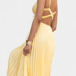 Camilla Maxi-kjolen udstråler lethed og femininitet gennem sin plisserede silhuet, V-hals og åben ryg. Den forener bevægelsesfrihed med tidsløs, aristokratisk elegance og fortæller historien om håndværkets omhyggelige udførelse og kvalitetsmaterialer, der følger kroppen i let drapering. Med et begrænset antal fremhæves kjolens eksklusive karakter og vedvarende værdi som en alsidig investering til solrige begivenheder og lune sommeraftener. Den tidløse konstruktion sikrer komfort og raffinement gennem sæsonerne, så Camilla forbliver relevant i enhver garderobe og en veletableret samlerstat for dem, der værdsætter kvalitet frem for trend.
