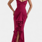 Élodie | Korsettkjole er et mesterstykke i tidløs elegance og håndværk. Den unikke konstruktion forener korsettets styrke med lette rynkede detaljer, der bevæger sig med ynde og fremhæver kroppens kurver uden at gå på kompromis med komforten. Hvert søm afspejler omhyggeligt håndværk, og den begrænsede tilgængelighed giver kjolen en diskret samlerappel og tidløs værdi. Med letvægts, elastisk materiale leveres elegance og bevægelse hele aftenen, mens sideudskæringen forlanger silhuetten og tilføjer et moderne råt præg. Élodie lover ikke blot en kjole, men et varigt element i en eksklusiv garderobe, ideel til bryllupper, galafester og begivenheder, hvor et let, overlegen statement ønskes.