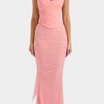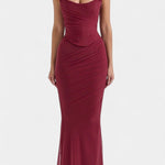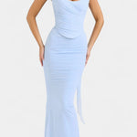 • Silhuet og korset: Struktureret korset former taljen og skaber en sofistikeret, kontureret silhuet.