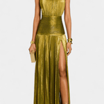 Kirstine | Maxi kjole er Isla™-kjolens udtryk for forfinet luksus i en dyb peridotgrøn nuance og en yndefuld silhuet, skabt til aftener man husker. Den draperede halterneck-udskæring tilføjer et subtilt, chic præg, mens den åbne ryg og det høje split skaber drama og let sensualitet. Den metalliske finish fanger lyset og giver dybde ved alle bevægelser, mens kvalitetsstoffet sikrer lang levetid og bevaret glans. Med Kirstine investerer du i varig skønhed og scenebærende kvalitet; en eksklusiv del af garderoben, der ikke følger trends, men sætter dem. Kjolen udstråler en tidsløs prestige, der appellerer til samleren og den kræsne smag og gør Kirstine til aftenens signaturstykke.
