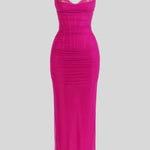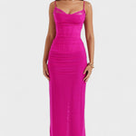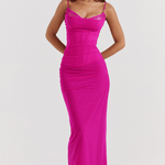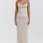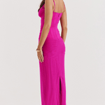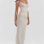 Larissa | Maxikjole fra Stine fortryller med sit flydende snit og lette polyesterstof, der skaber bevægelsesfrihed uden at gå på kompromis med komforten. Den tidløse elegance møder hverdagsglamour i et klassisk cut, der passer til både festlige stunder og stilfulde hverdage. Håndværk og kvalitetsmaterialer taler gennem subtile detaljer og en holdbar pasform. Den begrænsede produktion understreger eksklusivitet og samlerværdi, mens den draperede silhuet og glatte stof giver Larissa lang levetid og konstant appel gennem sæsonerne. En investering, der bevarer sin charme år efter år.