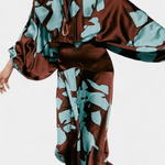 - Silhuet og detaljer: Lange ærmer med slids giver naturlig bevægelse, mens den metalliske halsudskæringsdetalje og markeret talje fremhæver en feminin silhuet.
