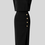 • Signaturdetaljer og rund halsudskæring: Ensfarvet design med dekorative knapper som signaturdetalje.