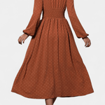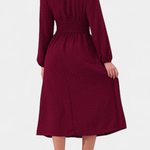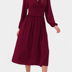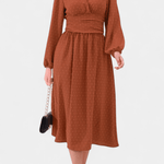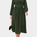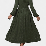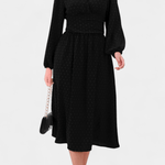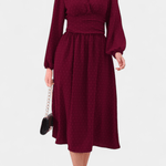 Faela | Midi-kjole repræsenterer vintage-chic og tidløs elegance, skabt til det moderne kontormiljø. Den forener delikate sveitsiske prikker med en struktureret midi-snit og en kropsnær silhuet, der udstråler selvtillid uden prætentiøsitet. Lange ærmer tilfører alvor, mens tekstur og det tidløse snit skaber en gennemført, elegant fremtoning. Håndværksmæssig kvalitet og nøje udvalgte materialer giver kjolen en varig arv i garderoben, og Produktionsbegrænsningen understreger eksklusivitet uden at gå på kompromis med alsidigheden. Faela er en investering i tidløs værdi og samlerappel — en kjole, der fortsat vil være relevant på tværs af sæsoner og begivenheder.