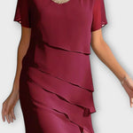 Marissa – Midikjolen fra Amalie står som et ikon på diskret luksus og tidløs elegance. Håndværket udtrykkes i de delikate, lagdelte chiffonlag, der bevæger sig let og falder skønt omkring kroppen. Den runde halsudskæring og de korte ærmer giver et sofistikeret, dækkende look, mens den elegante silhuet gør kjolen nem at stile til enhver lejlighed. Med fokus på varig kvalitet og håndværk frem for kortvarige trends er Marissa designet som et signaturstykke til bryllupper, middage og festlige øjeblikke. Begrænset produktion øger eksklusiviteten og gør den til en langtidsholdbar investering i garderoben.