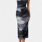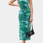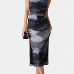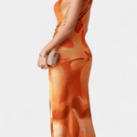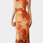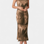 Sofie | Langkjole fra Helaia forener retrocharme med en moderne visuel æstetik og bærer sin stolte arv i hver søm. Det omhyggelige håndværk og de udvalgte materialer giver kjolen en tidløs kvalitet, der kan gå i arv og fungere som en diskret investering i garderoben. Det bløde farvespil og det kunstneriske digitale mønster skaber et særligt, underliggende udtryk, som fanger øjet uden at dominere. Den lange silhuet og frontåbningen giver et sofistikeret, selvsikkert look, der udstråler lethed og varig elegance. Sofie er ideel til aften- og særlige lejligheder, hvor et enestående, mindeværdigt udtryk står i fokus. Med begrænset produktion står kjolen som et ægte samlerobjekt og en tydelig erklæring om oprindelse og håndværk.