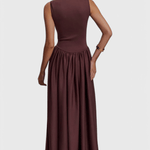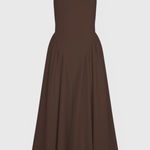 Verona | Kjole fremviser en nøje afstemt balance mellem raffinement og femininitet og bærer en arv af europæisk designtradition. Den firkantede halsudskæring, smalle stropper og formgivende paneler skaber en skulpturel silhuet, mens det vidt faldende midi-skørt bevæger sig med hvert skridt. Hver søm vidner om håndværkets omhu, og materialerne i høj kvalitet udtrykker tidløs prestige. Verona | Kjole produceres i begrænsede mængder, hvilket tilfører en naturlig samlerappel og en eksklusiv karakter, der gør den til en investering i garderoben gennem sæsoner. Den konturerede silhuet forstærkes af let rynkning og det bevægelige midi-skørt, der giver kjolen alsidighed.