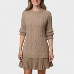 Sofie er en garderobeklassiker, hvor tidløshed møder ansvarlig luksus. Håndværket kommer til udtryk i hver søm, og materialerne udvælges med omtanke for kvalitet og holdbarhed. Genanvendt garn giver en dyb, blød struktur og let varme, der gør kjolen anvendelig gennem sæsoner. Produktionsprocessen spejler vores arv om excellence og diskretion: begrænset antal, nøje udvalgte kilder og en tidløs stil, der ikke følger kortvarige trends. Sofie favner en klassisk silhuet med mini-længde, der tiltaler dem, der værdsætter raffinement og miljøbevidsthed.