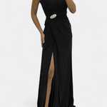 • Signaturdetaljer — Den krydsede halsudskæring og draperede silhuet tilføjer diskret poise og karakter.