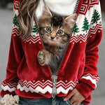 Kvinders Retro Jule Dyre Kunst Print Behagelig Flannel Sweatshirt