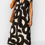 Camilla er et tidløst statementstykke fra vores eksklusive kollektion. Håndværket kommer til udtryk i hver søm og detalje: nøje udvalgte materialer og et skarpt snit, der fremhæver formerne med diskret elegance. Den dybe V-hals giver et sofistikeret décolleté, mens det klassiske sort-hvide mønster forener komfort og moderne stil. Kjolen fremstilles i begrænset antal, hvilket understreger dens ædle oprindelse og tidsløse værdi. Det lette, åndbare stof sikrer universel pasform og lang levetid i garderoben.