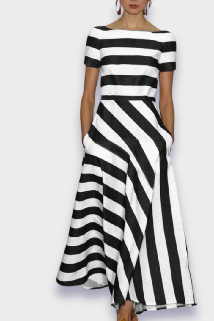 Louise | Håndlavet stribet er en sofistikeret kjole, håndlavet med fokus på komfort og kunstnerisk håndværk. Den er designet til kvinder, der ønsker at skille sig ud uden at gå på kompromis med ergonomi, og falder løst og naturligt i en let, åndbar kvalitet. Det særlige stribede mønster signalerer diskret luksus og understreger en tidløs appel, mens den håndsyede finish vidner om omhyggeligt håndværk og en forpligtelse til kvalitet. Louise fremstilles med omtanke for provenance og holdbarhed; hvert stykke gennemgår streng håndværkskontrol og leverer en særegen, langtidsholdbar elegance. Begrænset tilgængelighed i kollektionen gør hvert køb til en eksklusiv investering i langtidsholdbar stil og samlerappel.