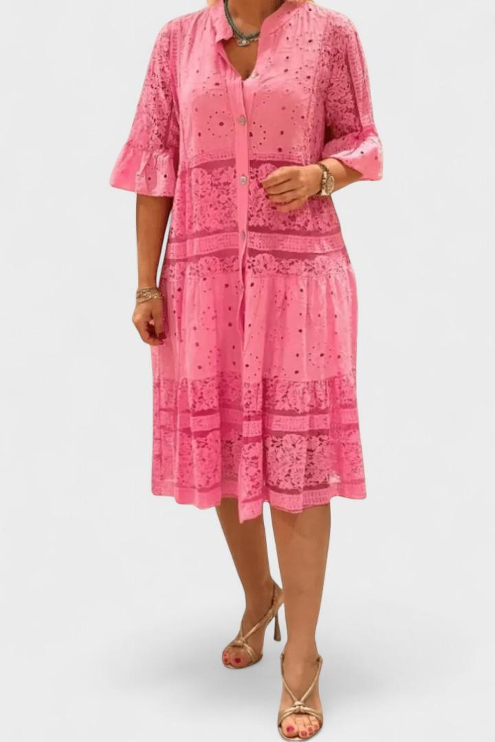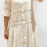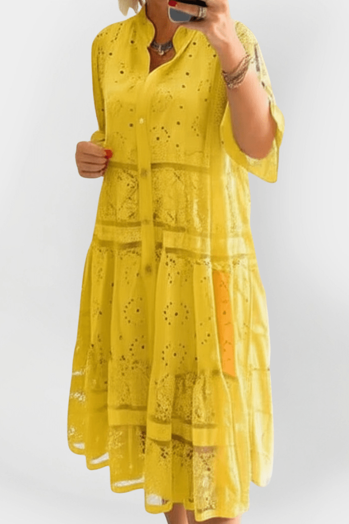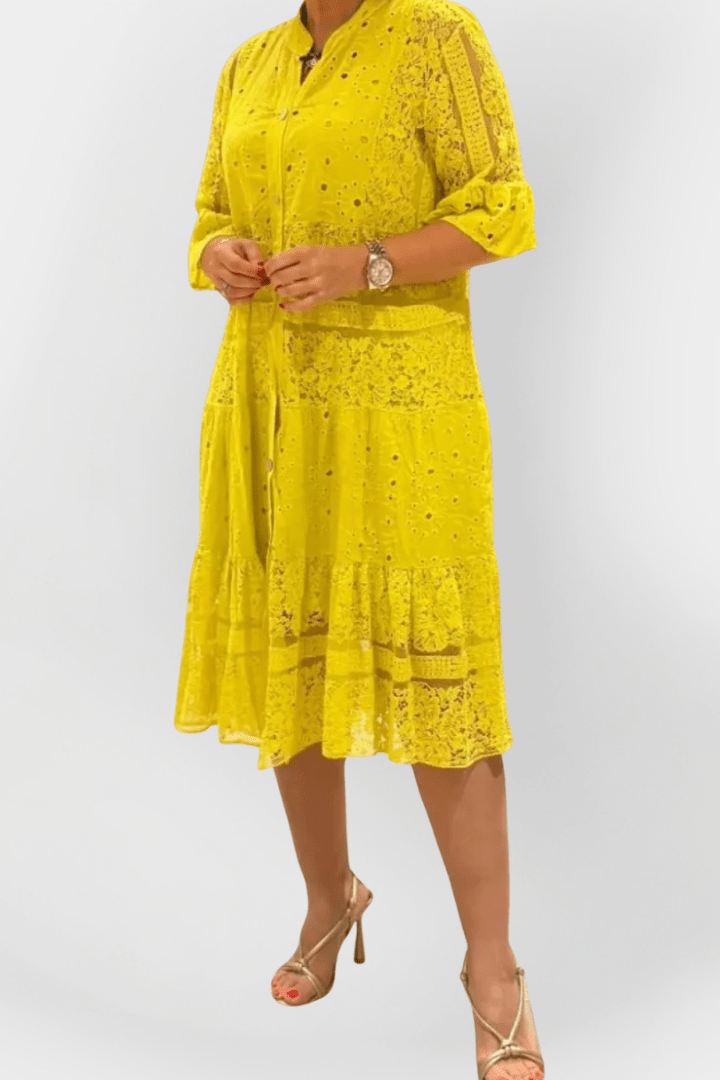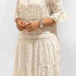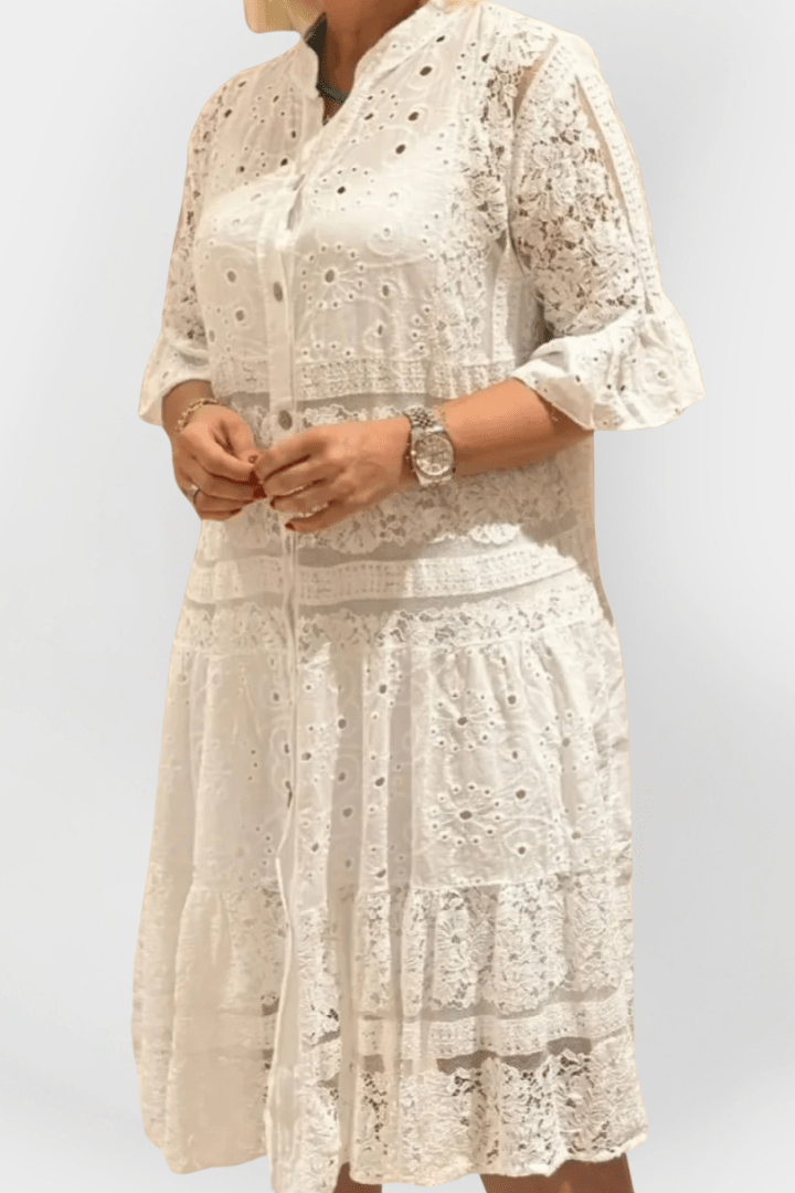 Mathilde | Blonder bluse repræsenterer let elegance og en tidløs femininhed, der forener klassisk håndværk med moderne design. Den kombinerer letvægtigt, åndbart stof med delikate blondedetaljer og håndbroderinger i højeste kvalitet, udvalgt for deres stille luksus og langtidsholdbarhed. Den diskrete krave og den rene knaplukning foran skaber et sofistikeret look, der let klæder sommerlige outfits op eller ned. De 3/4-lange blondeærmer tilføjer en romantisk finish og passer til både hverdags- og aftenslook. Arven bag Mathilde ses i den tidsløse silhuet og i materialernes omtanke, og den begrænsede produktion tilføjer en særlig samlerværdi for dem, der værdsætter håndværk og provenance. Mathilde er en investering i stil, der holder sin relevans og fortæller sin historie gennem materialer og detaljer, år efter år.