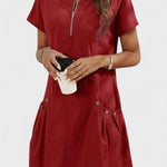Mette | Lynlås Minikjole møder enkelhed og raffinement i en vinrød, kortærmet kjole. Den rene silhuet giver en løs pasform, der flatterer alle kropsformer uden at begrænse bevægelsen. Den dybe nuance tilfører varme og tidløs stil, som nemt kan opgraderes til både hverdag og særlige øjeblikke. Kjolen er skabt med fokus på håndværk og materialekvalitet, og dens lette konstruktion gør den til et varigt element i garderoben. Som del af vores kollektion signalerer den elegance og en diskret appel til samleren, der værdsætter klassisk design og en fornuftig provenance.