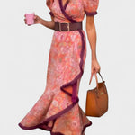 Millea | Romantisk flæsekjole er en sofistikeret fusion af vintage charme og moderne elegance, hvor håndværkets omhu og arvelig eksklusivitet mødes for at skabe en kjole af tidløs kvalitet. Den udstråler raffinement til middage, havefester og særlige øjeblikke, hvor du ønsker at føle dig ekstra. De voluminøse, romantiske ærmer bevæger sig elegant med dig, mens den knyttede wrap-V-udskæring smigrer hals og décolleté. Et bredt taljebælte fremhæver silhuetten og giver en let, draperet bevægelse. Millea leverer premium materialer og detaljer, der sikrer lang levetid og samlerappel gennem generationer.