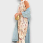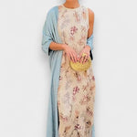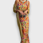 Signe | Blomstret langkjole møder europæisk håndværk, let, luftig kvalitet og en tidløs silhuet, der passer til sommerens øjeblikke. Det dæmpede blomsterprint og den diskrete halsudskæring signalerer raffinement uden anstrengelse, mens finish og materialer tydeligt afspejler premium håndværk. Sammen med den lette cardigan udgør kjolesættet et gennemført look til terrassens brunch eller en fredfyldt gåtur ved vandet. Den begrænsede produktion giver eksklusivitet og samlerappel og gør Signe-kjolen til en bæredygtig investering i garderoben, der holder stilår og lang levetid.