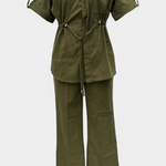 • Design og pasform: Løs top og lige bukser med justerbar talje, der sikrer bevægelsesfrihed og tilpasset pasform.