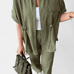 Lærke | Sæt udstråler sofistikeret, tidsløs elegance til hverdagen. Dette to-delte sæt følger dig gennem dagen i en let, afslappet top og lige bukser, der bevæger sig med dig og tilpasser sig dagens tempo. Med håndværk i drapering og snit fremstår det eksklusive, diskrete prestige uden overdrivelse. Fremstillet i en bomuld-lin-blanding af høj kvalitet, valgt for åndbarhed og skånsomhed mod huden, lever Lærke | Sæt komfort hele dagen—om sommeren som i overgangsperioder. Begrænset antal bidrager til en fornemmelse af langsigtet værdi, mens top og bukser kan bruges sammen eller separat og dermed giver enestående fleksibilitet til morgenrutiner, arbejde og weekendaftener. Den tidløse glød gør sættet ideelt til brunch, små udflugter eller hverdagsplaner med en beskeden, moderne elegance.