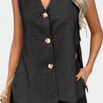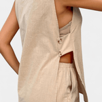 Linen | Sæt forener en afslappet, sofistikeret silhuet med linnedets naturlige friskhed. Den tætsiddende top med V-hals og knapper giver et ryddeligt og stilrent udtryk, mens shortsene med elastisk talje sikrer bevægelsesfrihed. Det lette, teksturerede linned afspejler håndværk og kvalitet, og sættet udstråler en rolig, tidløs elegance inspireret af Loren. Med naturlige fibre og en holdbar finish står Linen | Sæt som en investering i sommergarderoben—et sæt der passer til solrige dage, bruncher og byvandringer uden at gå på kompromis med komforten. Premium linned i let, tekstureret kvalitet fører naturen ind i din garderobe og lover lang levetid. Loren-inspireret æstetik udstråler rolig, tidløs elegance og håndværksmæssig finish. Begrænset antal tilgængeligt — en ægte investering i sommergarderoben med holdbarhed.