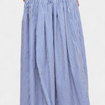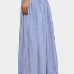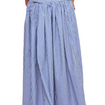 Majken | Sæt udstråler strukturel finesse og naturlig elegance gennem en stribet højhalset skjorte og en plisseret jacquard-nederdel. Med premium materialer og gennemført håndværk fremstår sættet eksklusivt uden at være påtrængende. Den begrænsede produktion bevarer sjældenhed og samlerværdi, samtidig med at den signalerer brandets arv og integritet. Kombinationen af striber og tekstur udtrykker moderne kystinspiration og tidløs elegance, mens det justerbare bælte fremhæver taljen og nederdelens sculpturale bevægelse.