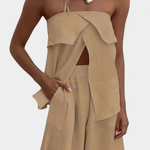 Oriana |Sæt udstråler raffineret sommerlig elegance og tidløs selvsikkerhed. Dette set forener en tætsiddende bandeau-top uden stropper med en lang nederdel med sidesplit og skaber en strømlinet silhuet, der glider gennem sommerdage og byliv. Designet fremhæver kroppen diskret gennem let, ensfarvet stof og gennemført omtanke i hvert snit, hvilket afspejler håndværkets kvalitet. Oriana |Sæt fungerer som en tidløs garderobeinvestering, der kombinerer raffinement, komfort og lang levetid – ideel til rejser, marinaftener og byens pauser, hvor subtil luksus møder praktisk elegance.