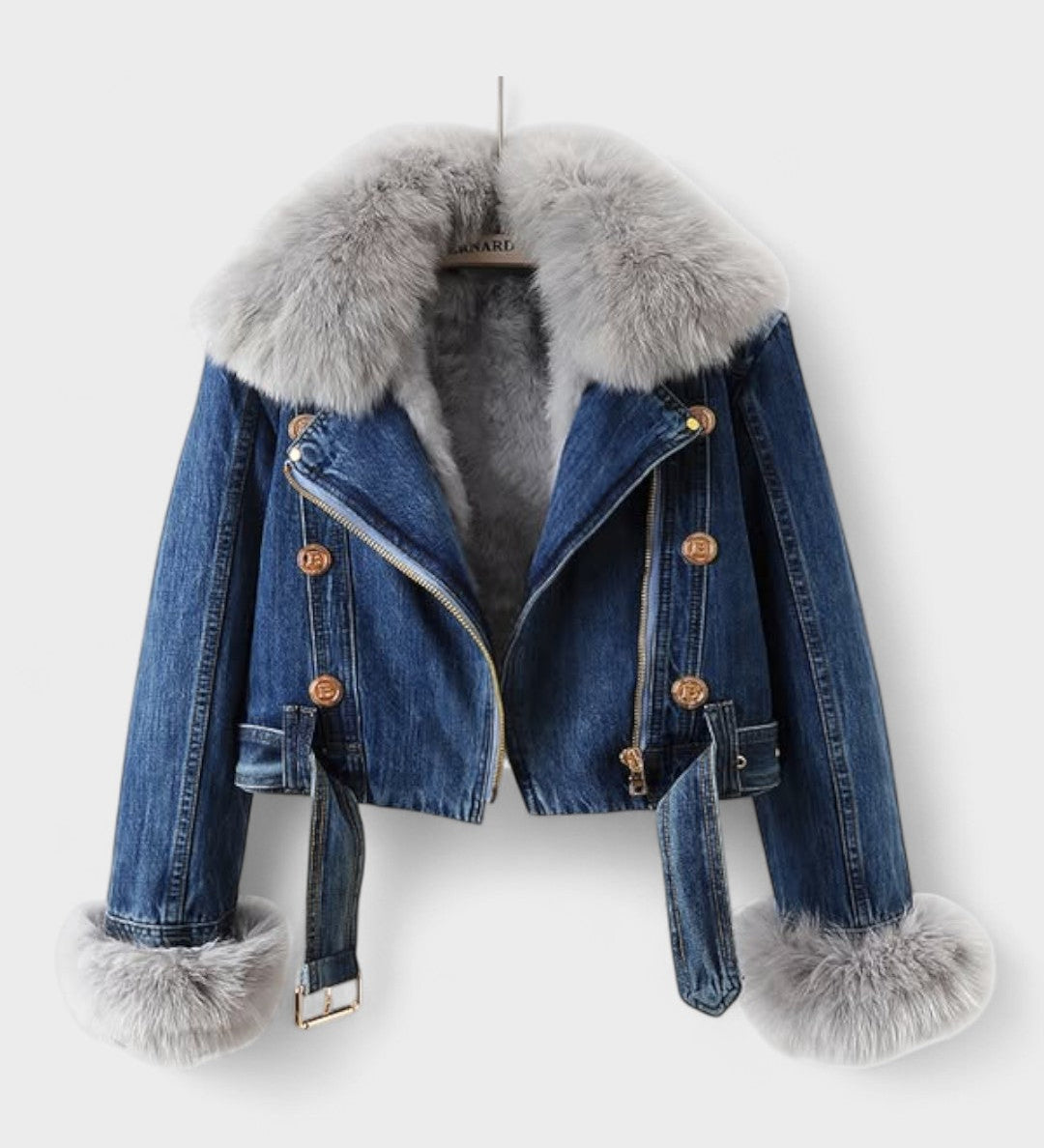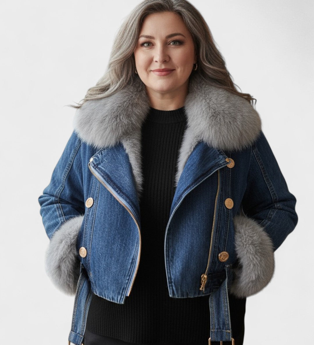 Thyra™ | Denimjakke med Faux Pelsfor