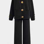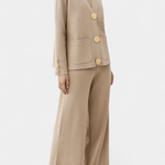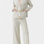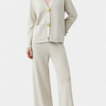 Karen | Langærmet Sæt udstråler tidløs elegance og underspillet luksus, hvor håndværk og materialer af høj kvalitet står i centrum. Den finvævede strik med diskrete detaljer og de brede bukser med elastisk talje giver en smigrende silhuet og behagelig bevægelsesfrihed. Med begrænset produktion fremstår Karen som en eksklusiv investering i lang levetid og samlerappel, der passer til kontor, møder og aftenarrangementer. Den neutrale farvepalet muliggør uendelige stylingmuligheder og beviser sætets tidsløse værdi.