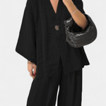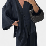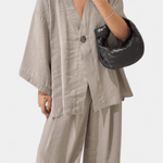 Millea | Langærmet sæt udstråler ubesværet elegance og tidløs kvalitet, hvor premium materialer møder kyndig håndværk. Toppen med V-hals draperer sig diskret omkring halsen, mens de lige ben skaber en let, sofistikeret silhuet. Sættet er designet med en naturlig pasform uden stretch, der sikrer komfort hele dagen uden at gå på kompromis med æstetikken. Håndværket og materialernes omtanke giver en holdbarhed og lang levetid, som gør Millea til et investeringstykke i en garderobe med langsigtet værdi. Begrænset antal tilgængeligt bevarer eksklusivitet og samlerappel til byvandringer og weekendture. Millea står som et tidløst valg, der kombinerer funktion, stil og bæredygtig arv.