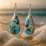 • Materiale og finish: Naturlige turkise sten møder gyldent-beige nuancer for en harmonisk kontrast, der fanger lys og bevæger sig med dig hele dagen.