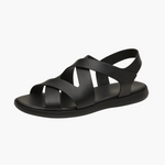 Harnio™ | Elegante Herresandaler repræsenterer tidløs karakter og kompromisløs komfort i et eksklusivt udtryk. Skoen er skabt med fokus på solidt håndværk og en omsluttende pasform: stabil, men ikke stiv, med ankelstøtte der øger stabiliteten gennem dagen. Kvalitetsmaterialer og præcis konstruktion giver lang levetid og en finish, der tåler daglig brug uden at gå på kompromis med detaljer eller æstetik. De krydsede remme skaber en moderne linje, som matcher både afslappede og minimalistiske looks, mens en elastisk detalje på siden sikrer en skræddersyet pasform.