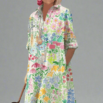 Karen | Blomsterkjole udtrykker et luksuriøst møde mellem håndværk og arv, med materialer udvalgt til lang levetid. Den klassiske skjorte-kjole-silhuet møder et legende haveprint i varme, harmoniske nuancer, der tilfører farve og personlighed uden at være overvældende. Karen er designet til solrige dage, brunch og afslappede ferier – en kjole der gør dig glad, når du tager den på. Provenance og eksklusivitet følger Karen, mens den tidløse kvalitet giver stærk samlerappel; den begrænsede tilgængelighed understreger karakteren og den langsigtede værdi i garderoben.