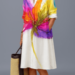 Solveig – Elegant midi-kjole forener nordisk håndværk med tidløs elegance. Den håndmalede blomsterprint fremstår som et lille kunstværk på en ren hvid baggrund og giver kjolen et friskt, sofistikeret udtryk. Kjolen er skabt i materialer af høj kvalitet, der kombinerer let åndbarhed med en glat, fløjlsagtig finish, så bevægelserne fremstår naturlige og fri. Den rene silhuet fremhæver linjerne uden overladelse, hvilket skaber en behagelig luksus til sommerdester og hverdagsklæder. Solveig taler til dem, der værdsætter tidløs kvalitet og personlig stil, og den begrænsede tilgængelighed gør den til et ægte samlerobjekt i en moderne garderobe, hvor omhu i hvert detalje – fra motiv til sømme og finish – vidner om en urokkelig forpligtelse til håndværk og langtidsholdbar værdi.