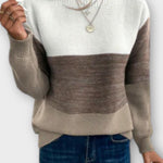 Clara | Patchworktrøje forener tre-farvet patchwork med et sofistikeret, moderne udtryk. Hver trøje er vævet i premium, blødt garn, der føles luksuriøst mod huden, og hver detalje afspejler håndværkets omtanke. Den tidsløse silhuet gør Clara til en garderobeinvestering, der markerer din signatur, samtidig med at den forbliver diskret og alsidig til langvarig brug. Begrænset antal i udvalgte farver tilføjer subtil samlerappel og eksklusivitet. Clara lover langtidsholdbar kvalitet og en tidløs elegance, der forventes at bevare sin appel gennem årene.