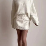 Tanja | Elegant Striktrøje er et udtryk for Zariahs arv af håndværk og materialekvalitet. Den lumenhvide trøje har et let, silkeagtigt fald og en blød, børstet overflade, der ligger tæt mod huden og giver varme uden at være tung. Subtile blomsterdetaljer tilføjer feminin elegance uden at dominere, hvilket gør trøjen til et tidløst stykke til særlige begivenheder og kølige aftener ved pejsen. Den rene silhuet falder smukt over kroppen og signalerer omtanke for detaljer, der tiltaler samler- og kvalitetsbevidste kunder. Den neutrale palet i blød hvid og sølvgrå gør den let at style med skræddersyede nederdele eller bukser samt med mere afslappede looks. Perfekt som en garderobeinvestering med lang levetid, der kan overleveres gennem generationer og giver tidløs værdi i enhver samling.