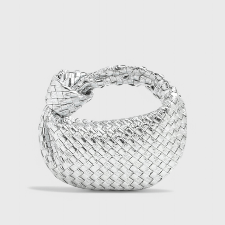 - Materiale og finish: italienskproduceret blødt vegansk læder med vævet mønster samt sølvfarvede rustfrit stålhardware.