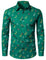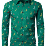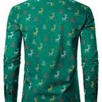 Herre Juletræ Elg Print Åndbar Grøn Langærmet Skjorte