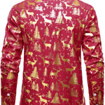 Mænds Gyldne Jule Rensdyr Festlig Print Rød Langærmet Skjorte