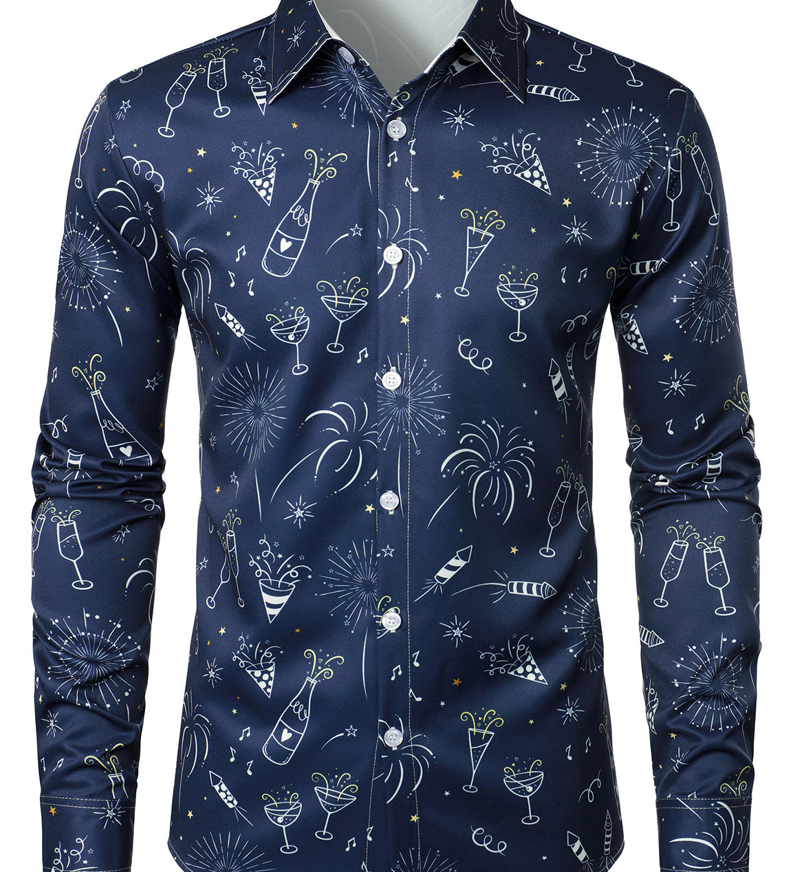 Herre Fyrværkeri Ferie Nytår Fest Knap-Op Blå Langærmet Skjorte