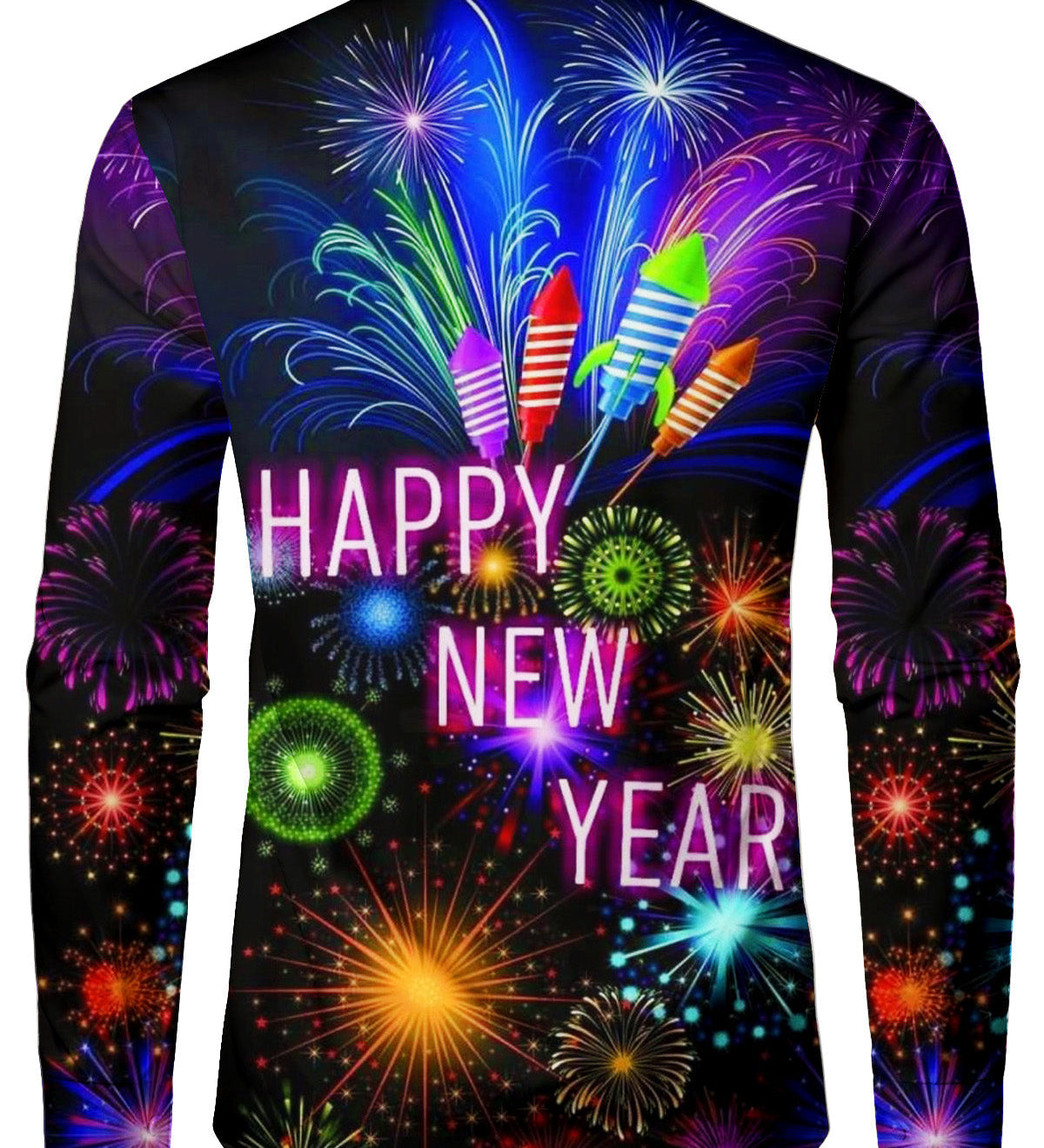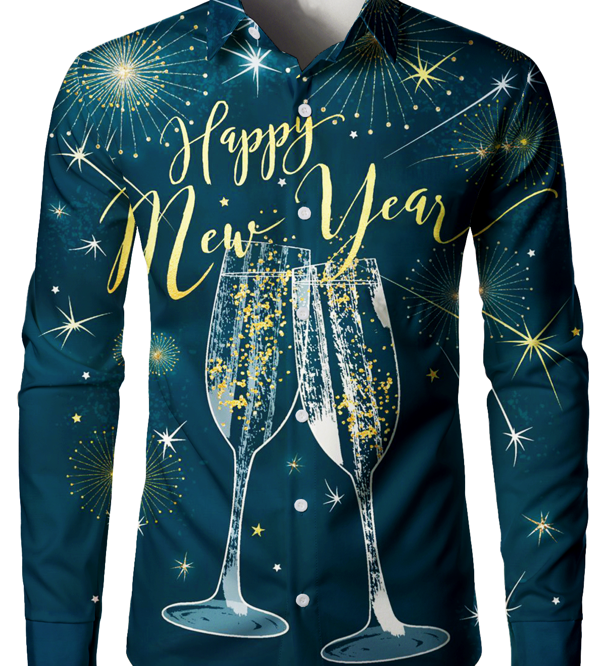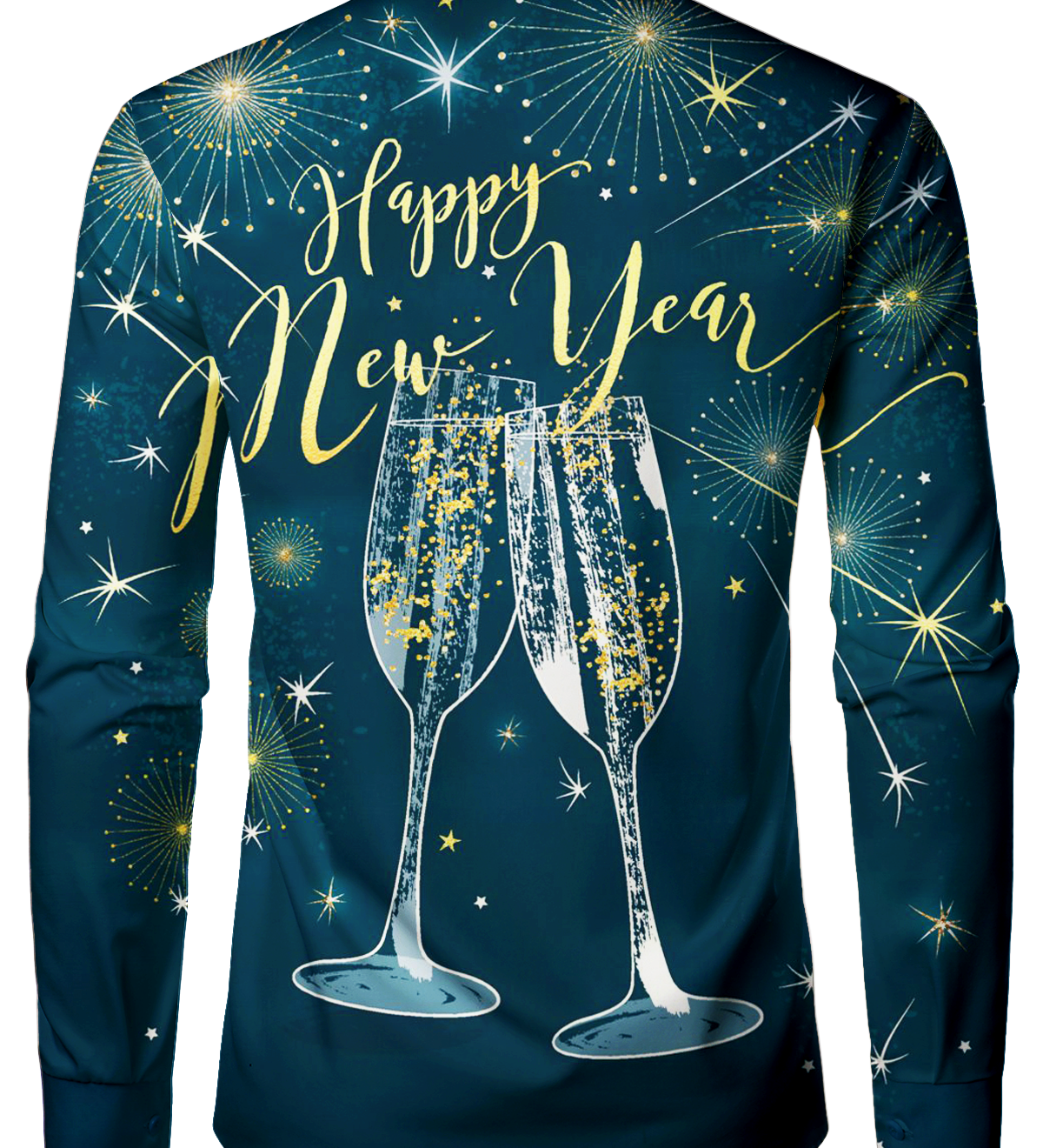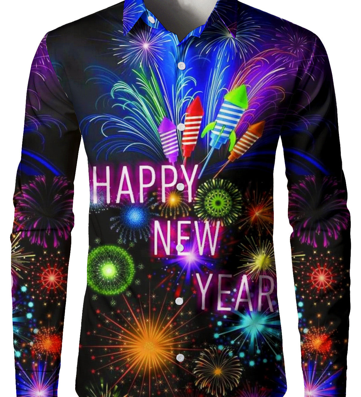Herre Happy New Year Fyrværkeri Langærmet Skjorte